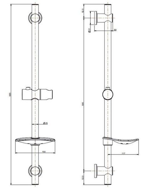 В комплект гарнитура входят хромированная штанга, полочка для мыла и держатель для гибкого душа.