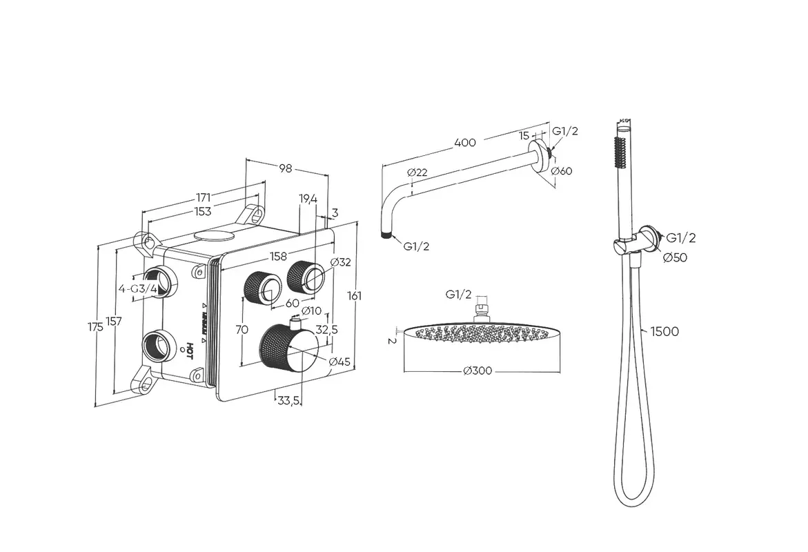 Душевой комплект Milleau Tissage TERMO 2SBIT/801Q-CR хром