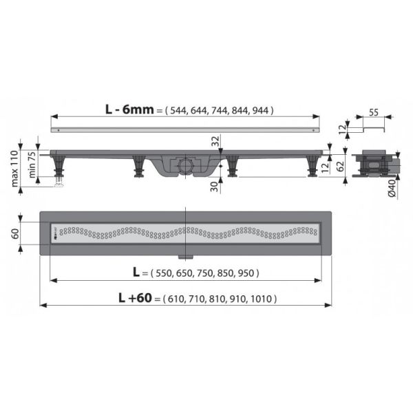 Душевой лоток APZ9-550M Simple с решеткой и опорами AlcaPlast купить