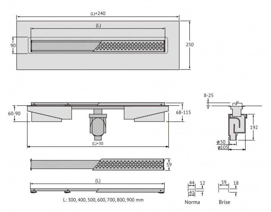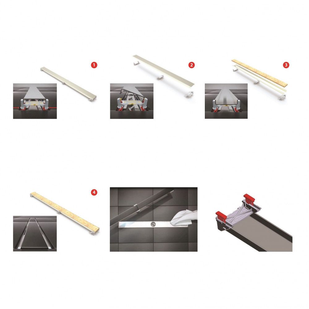 Душевой желоб Berges C1 Norma это современное функциональное решение для оборудования водоотвода во внутренних помещениях. Выполнен из высококачественной нержавеющей стали AISI 304, что обеспечивает жесткую фиксацию в основании пола и длительное использование.Изоляционная мембрана, интегрированная в стальной корпус, гарантирует непроницаемость и совместима со всеми изоляционными материалами.Усовершенствованная система настройки высоты изделия позволяет выполнить легкую регулировку под заданную толщину покрытия, с минимальной высотой монтажа (заливки) - 65мм. Поворотный сифон с гидрозатвором имеет высокую пропускную способность 48 л/мин и оригинальную самопромывную конструкцию.Съемная сетка для волос (грязеуловитель) предотвращает попадание мусора в сифон и позволяет легко проводить очистку желоба. Благодаря возможности переворота решетки и вклейки плитки, вы ощутите цельность пространства в вашей ванной комнате и душевой.