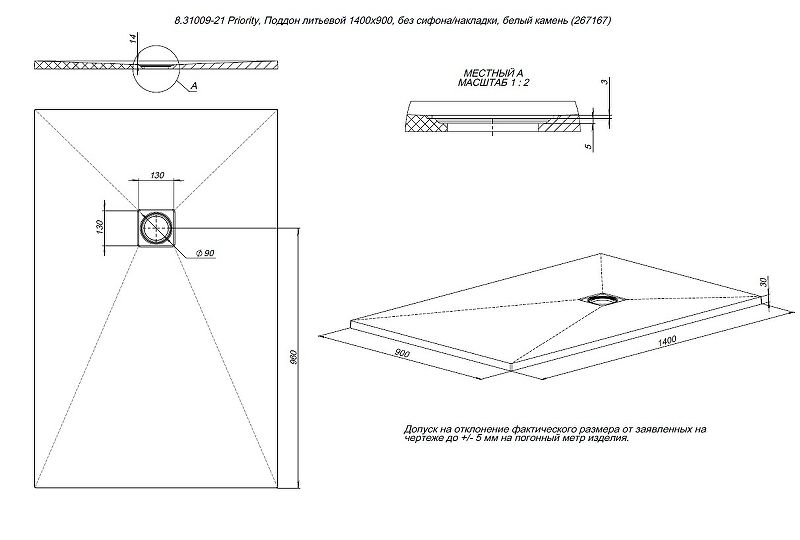 Размеры (ШхВхД): 1400х30х900 мм.