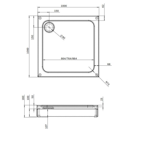 Душевой поддон Am.Pm Gem W90T-403-100W 100x100 см с сифоном купить