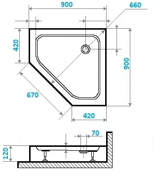 Поддон акриловый с возможностью реставрации и повышенной прочностью, имеет следующие технические характеристики: