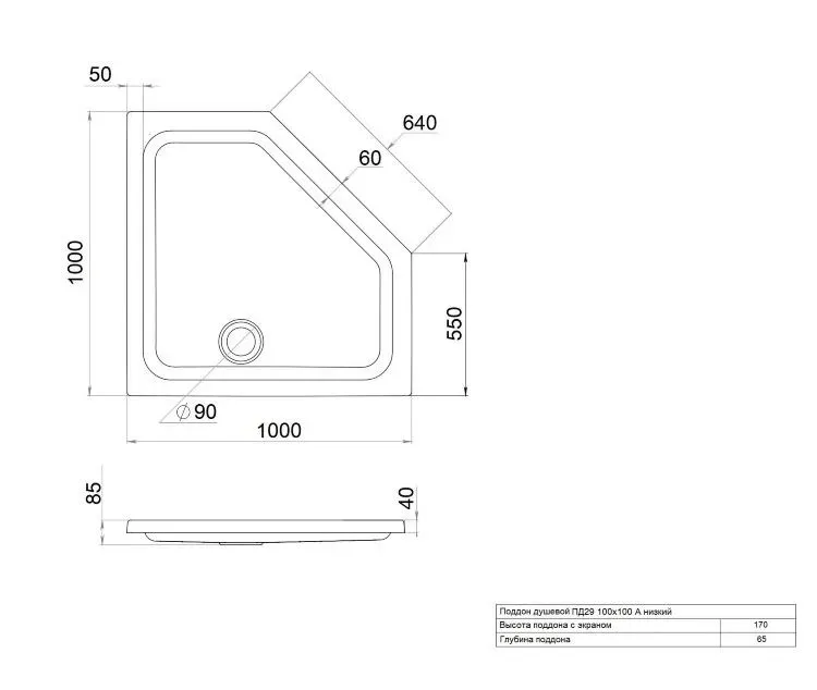 - Высота поддона 170мм