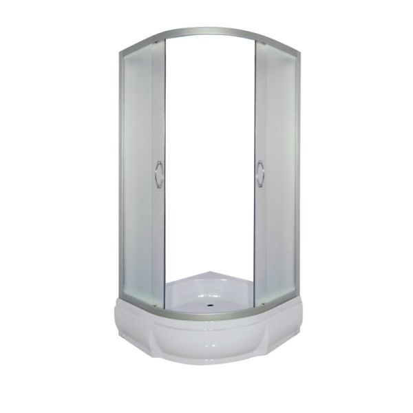 Типы и размеры:без поддона 80*80*170с поддоном 80*80*196 Матовое стекло, профиль матовый хромДушевое ограждение для ванной комнаты полукруглое с боковым регулировочным профилем и саморегулирующимися металическами, хромированными, двойными роликами.