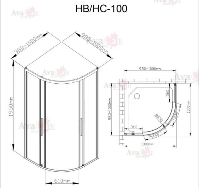 Душевой уголок AvaCan C01 100x100 см купить