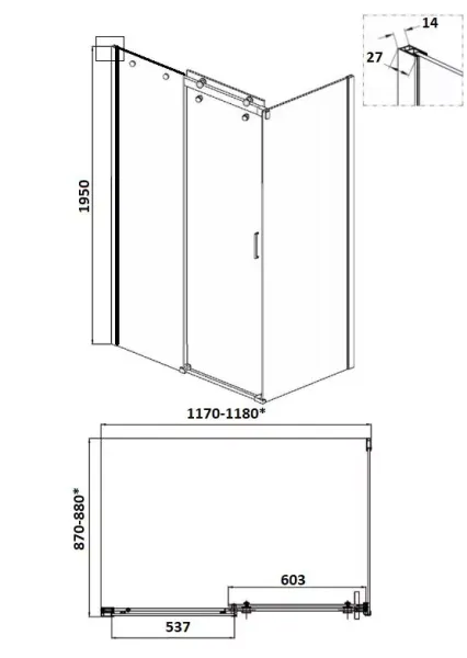 Размеры без поддона: 118х88х195 см