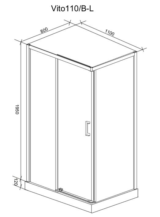 Душевой уголок Ceruttispa Vito110B-L без поддонаРазмеры без поддона: 108х78х195 смРазмер: 110x80x195 см*Особенности:Стекло: закаленное 6 мм, прозрачное, без рисункаПрофиль: алюминиевый,черныйДверь: раздвижная на роликахРолики: Doppi двойные металлические хромированныеРучка: Acciaio puro - черная из чистой сталиДостоинства:универсальная сборка левая или праваямагнитный замок - Soft closeсборка Quick stapleналичие пристенных профилей для выравнивания кривых стен.Приобретается отдельно: поддон QR110 110х80х12, сифон. * длина и ширина указаны с учетом поддона