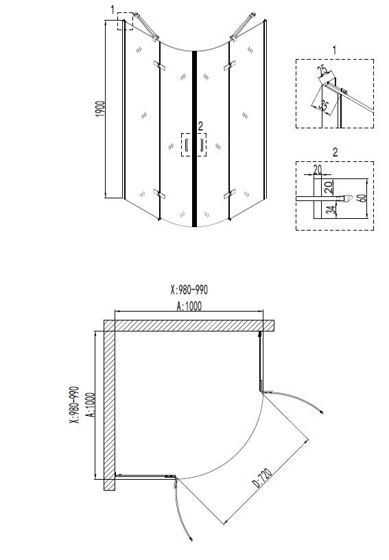 Форма: 1/4 круга