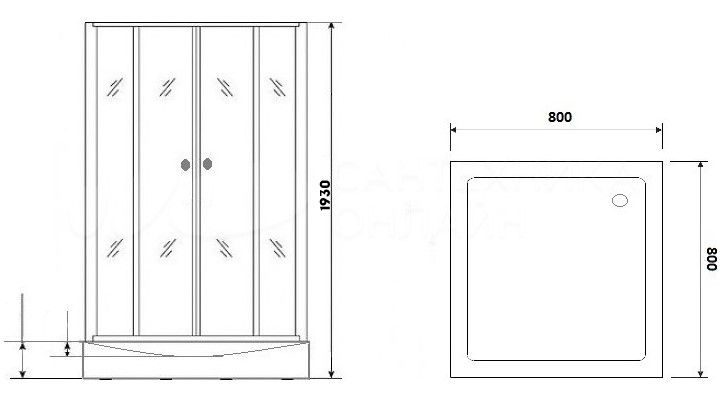 Низкий квадратный поддон (10 см) с рельефным дном будет особенно удобен пожилым и людям с инвалидностью.