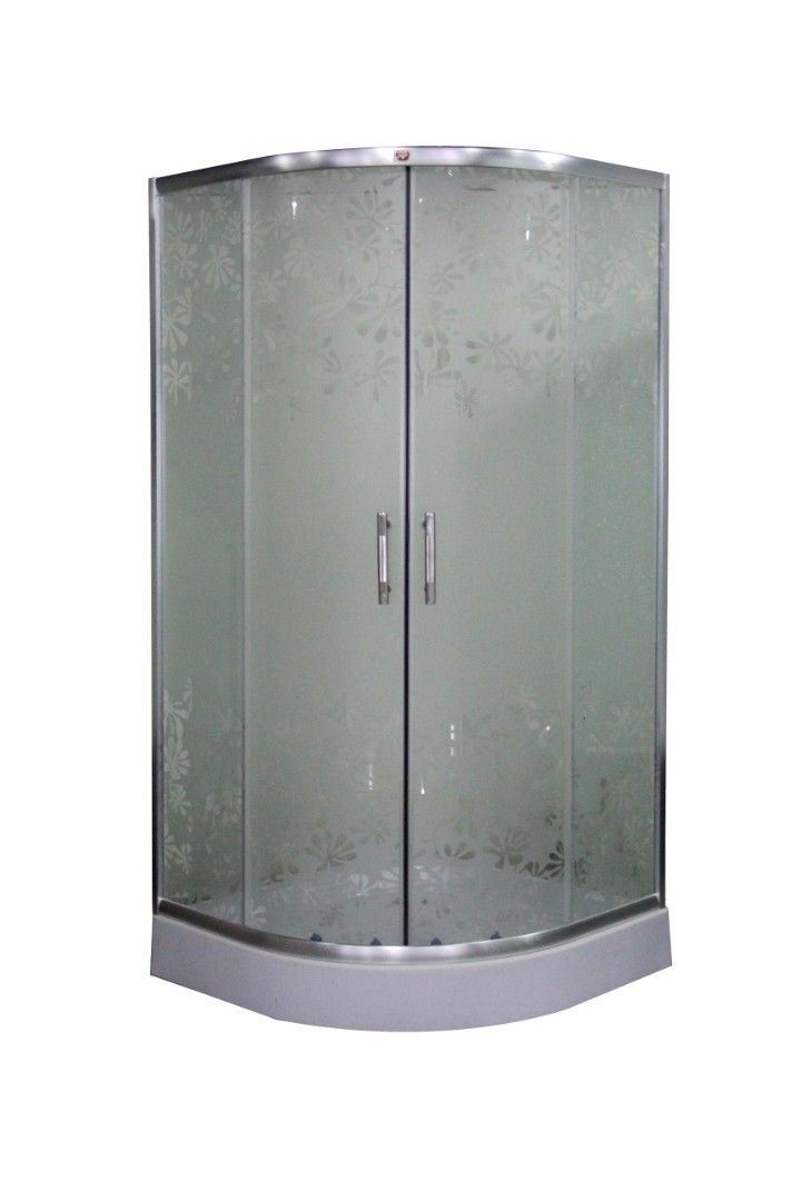 Душевой уголок Parly Z91 с поддономРазмер: 90х90х190 смВ модели красиво сочетается алюминиевый матовый профиль и матовое стекло с цветочным рисунком. Закругленная форма уголка экономит место в ванной комнате. При этом внутри душевой зоны достаточно комфортно.Достоинства:Безопасное стекло толщиной 5 мм.Низкий поддон 12 см. Высоту бортика легко преодолеют пенсионеры и люди с инвалидностью. Рельефное дно предупреждает падения.Двойные верхние ролики и нижние одинарные обеспечивают плавных ход дверей.Створки смыкаются плотно, не пропуская воду наружу.Ручка из нержавеющей стали не боится влаги и перепадов температуры.Сифон в комплекте.