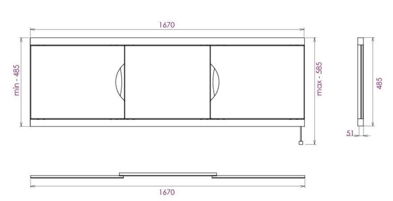 Ножки позволяют регулировать экран по высоте от 52 до 60 см, благодаря этому экран является универсальным и впишется в интерьер любой ванной комнаты.
