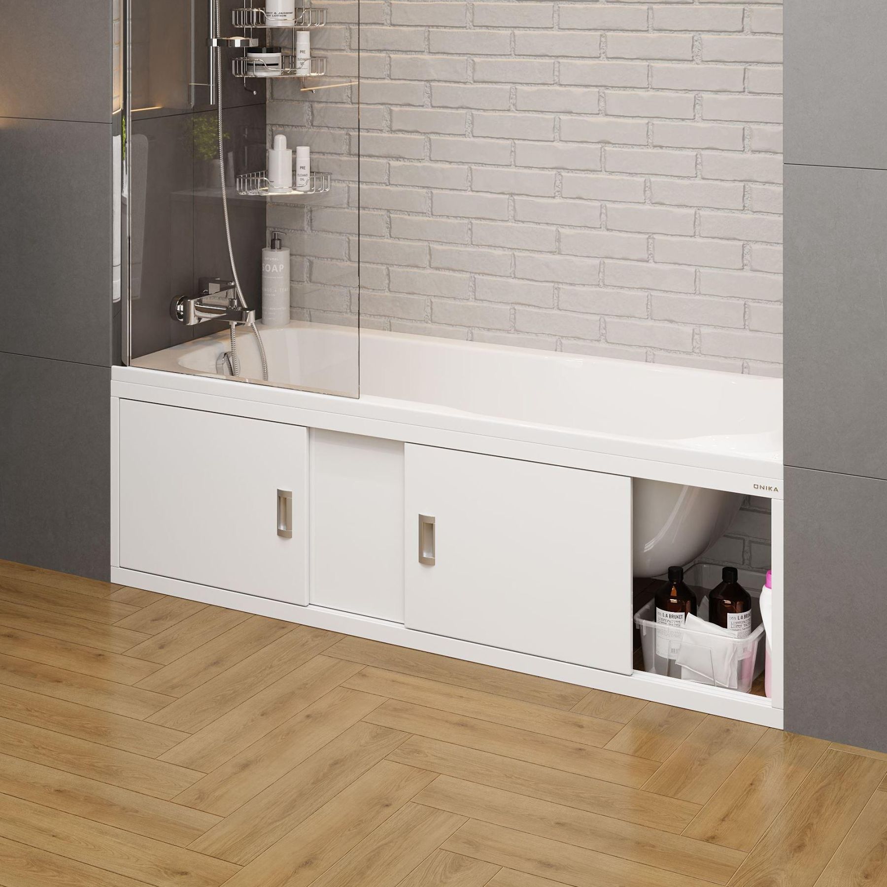 Экран Onika обладает повышенной износостойкостью, отлично переносит эксплуатацию во влажном воздухе и хорошо сочетается с любыми ваннами.