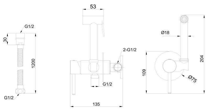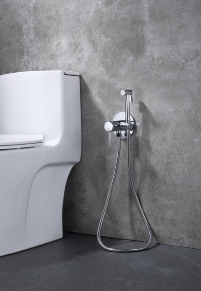 Одноточечный смеситель с гигиеническим душем, шланг 1,2 метра, латунь.