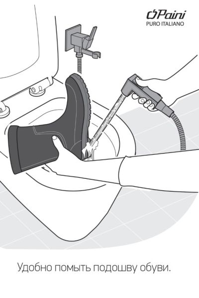 - С помощью гигиенического душа со смесителем очень легко ополоснуть подошву обуви, горшок ребенка, лоток для животного.