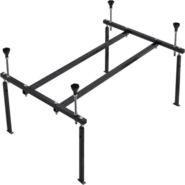 Каркас разборный для акриловой ванны Aquanet Seed 100x70 представляет собой надежную конструкцию для установки ванны. Металлические детали каркаса подвергаются трехступенчатой обработке, когда сначала профильная труба проходит абразивную зачистку на специальном станке, после чего готовые детали обрабатывают каустической содой, и, просушив, покрывают с помощью электростатического распылителя молотковой краской по металлу. Это гарантирует равномерность окрашивания и стойкость покрытия, благодаря чему каркас выглядит аккуратно и не ржавеет. Расстояние от пола до нижней поверхности дна ванны можно регулировать максимально до 10 см с помощью ножек.