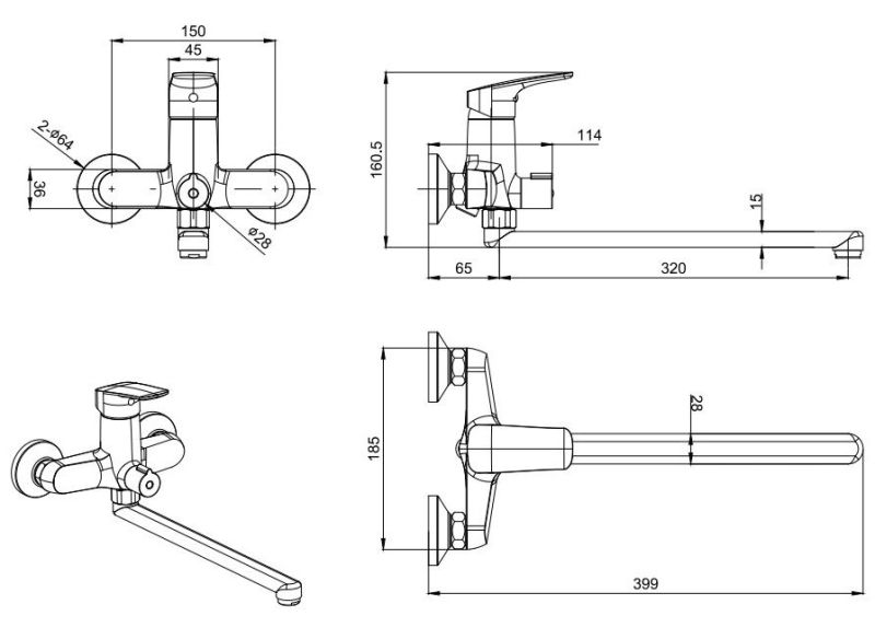• Душевой гарнитур: стойка для душа с мыльницей, лейка, шланг