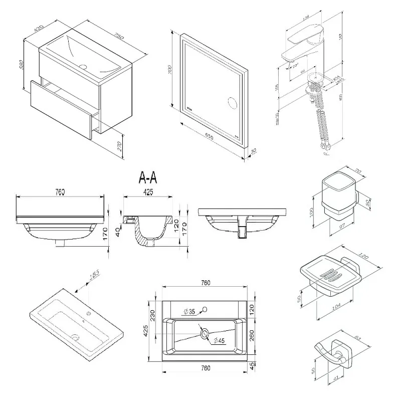 - Подвесная база под раковину (75 см) – компактная и удобная.