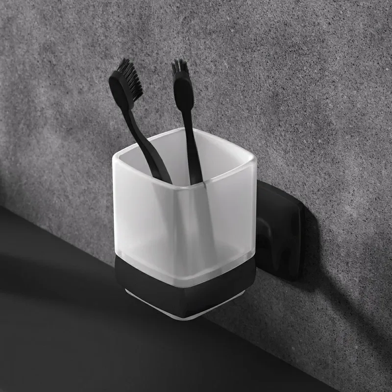 - Стеклянный стакан и мыльница с держателями – удобство в деталях.