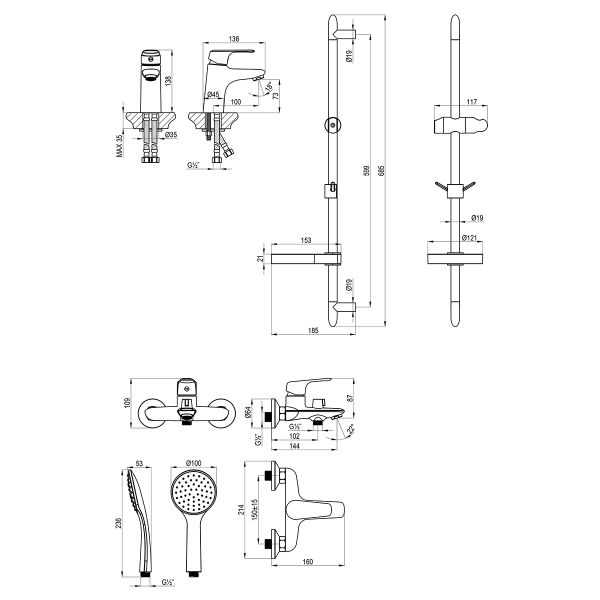 • Аксессуары в комплекте: 1-функциональная лейка Ø100×236 мм, душевой шланг 1,5 м