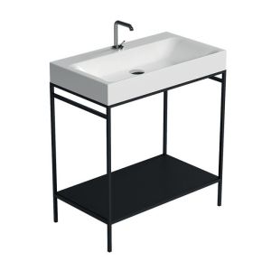 Консоль под раковину Kerasan Cento 924331 Kerasan Cento 924331 Металлическая напольная консоль с металлической полочкой под раковину Cento 353301, размер 800х450х780 мм, цв. черный матовый.
