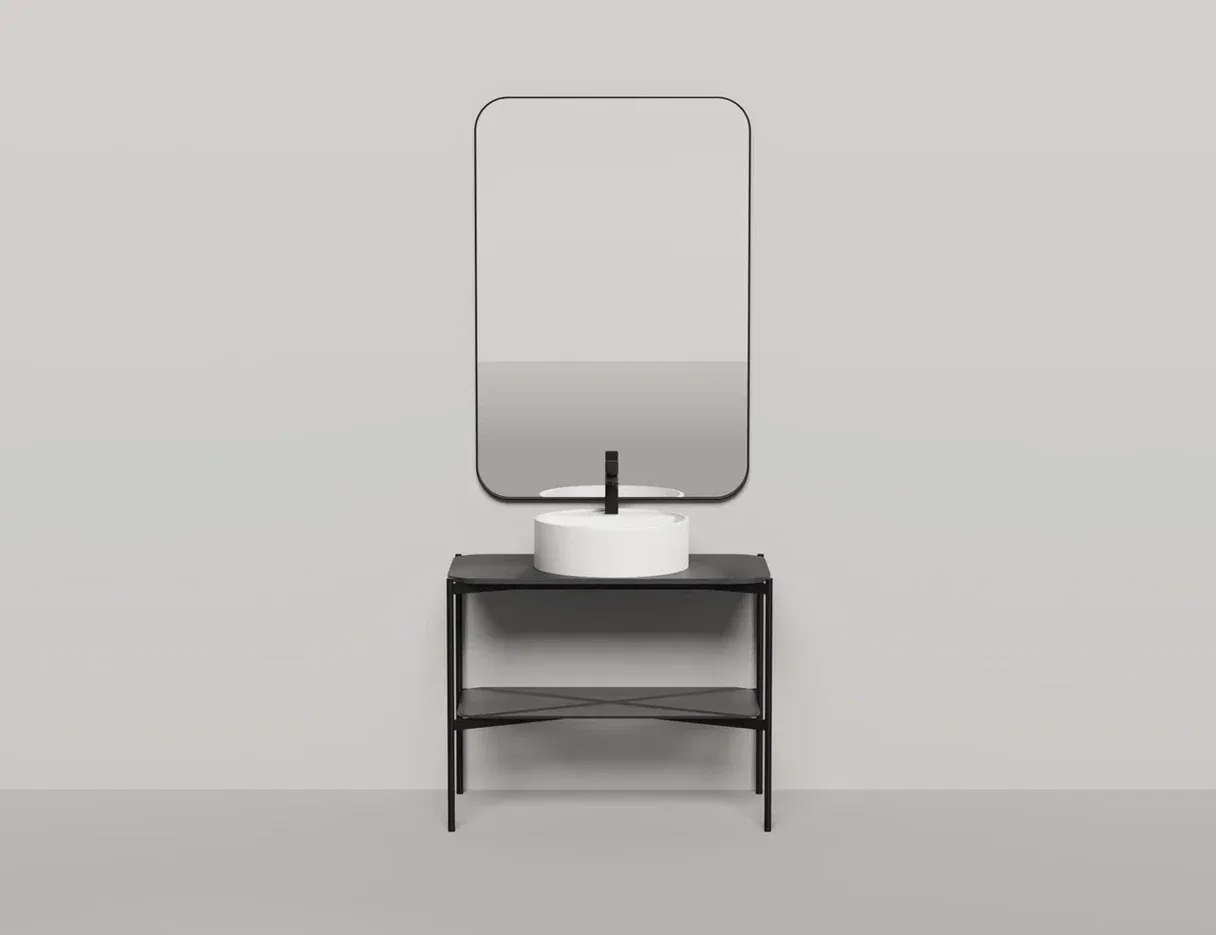 Консоль, предназначенная для установки накладных раковин из ассортимента Salini, изготовлена из металла, выполнена в благородном матовом чёрном цвете.