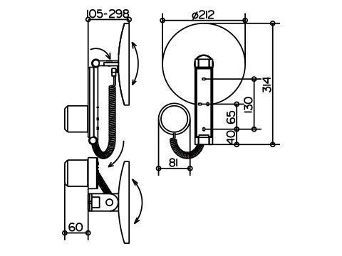 Косметическое зеркало Keuco iLook move 17612079000 хромKeuco iLook_move 17612 019000 Косметическое зеркало с подсветкой, настенная модель на кронштейне с шарниром, регулируется в трех плоскостях, одностороннее зеркало, вогнутое, подсоединение к электропитанию через через встроенный в стену трансформатор (230 В ) и спиралевидный кабель (400 мм), фактор увеличения x 5. Подсветка: 1 x 4,5 Вт светодиод (не требующая замены лампа!!!). Расход в режиме ожидания: < 0,5 Вт. Стеклянная сенсорная панель управления. Цвет подсветки: от 3200 Кельвин (теплый белый) - 6000 Кельвин (дневной свет). Цвета подсветки настраиваются индивидуально. Диаметр: 212 мм. Внимание: для установки и встройки трансформатора в стену необходима обычная коробка под эл. розетку (68 мм диаметром).
