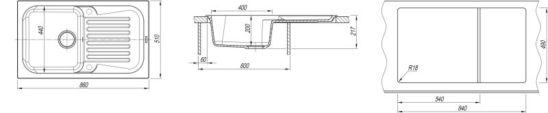 - Габариты нетто ( ДхШхВ) 860х510х217 мм