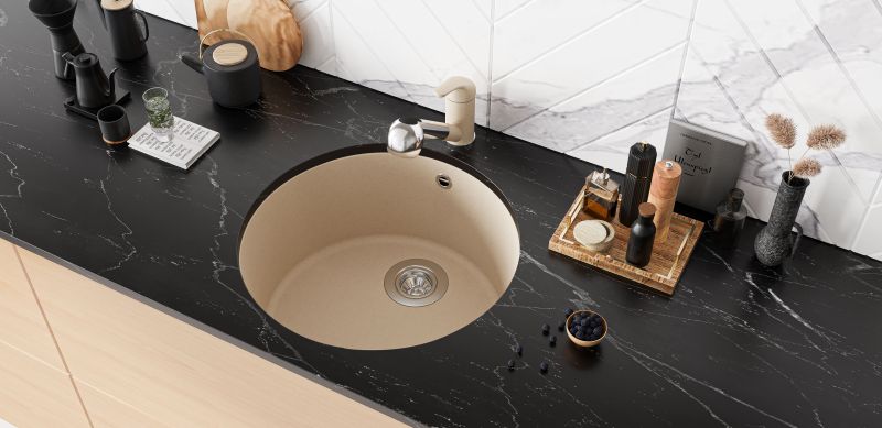 Мойка классическая круглая для кухни подстольного монтажа Florentina Вега Зеро изготовлена из композитного материала.
