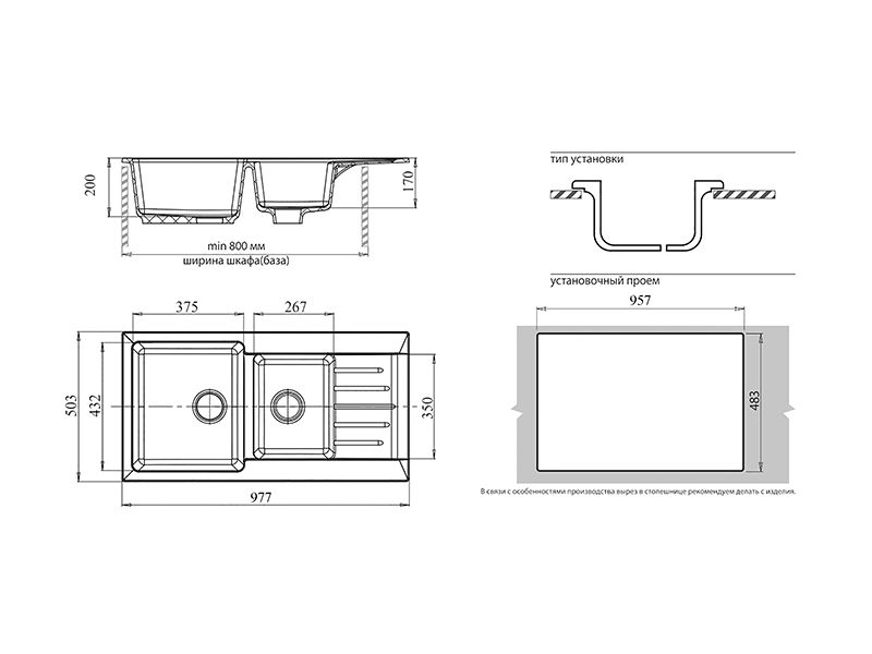 Мойка кухонная GranFest Чёрная Practic P-980 KL чер купить