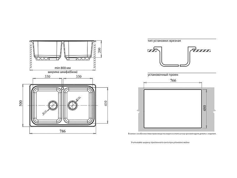 Установочный проем: 766*480 мм