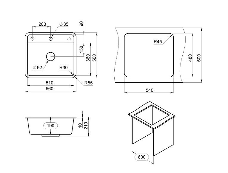 - Отверстия под смеситель:1