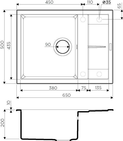 - Отверстия под смеситель:нет