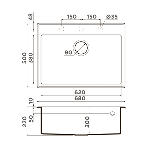 - Отверстия под смеситель:нет