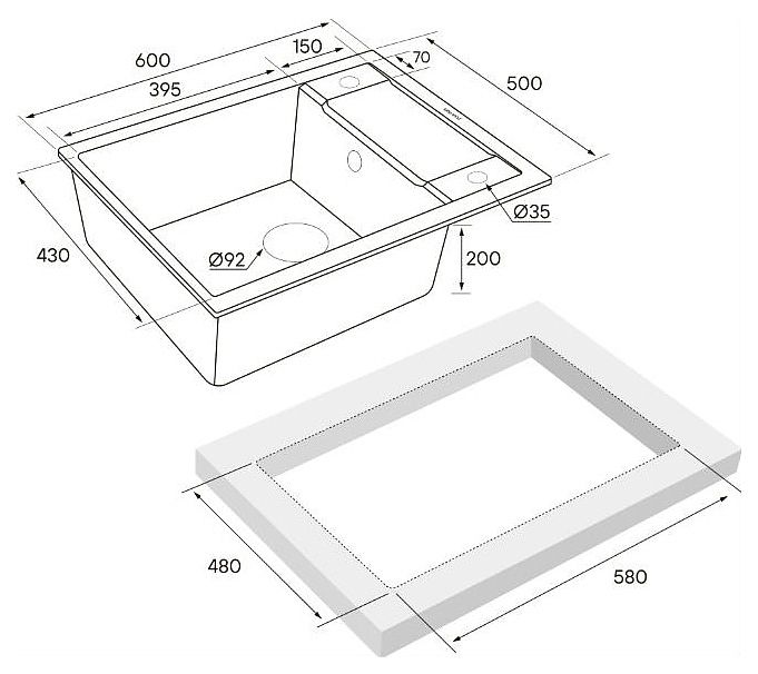 Материал мойки устойчив к механическим повреждениям, а также выдерживает температуру до 180 градусов.Однородная структура цвета