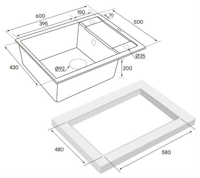 Мойка FLUGEN 50-600, изготовленная из искусственного гранита под брендовым названием IT-GRANIT, это: