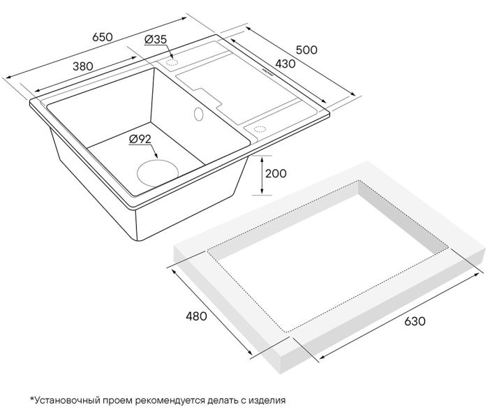Материал мойки не нужно герметизировать, и, поскольку он не пористый, то он максимально устойчив к окрашиванию.Функциональное плоское крыло мойки