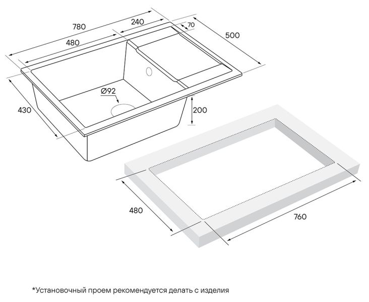 Материал мойки не нужно герметизировать, и, поскольку он не пористый, то он максимально устойчив к окрашиванию.Функциональное плоское крыло мойки