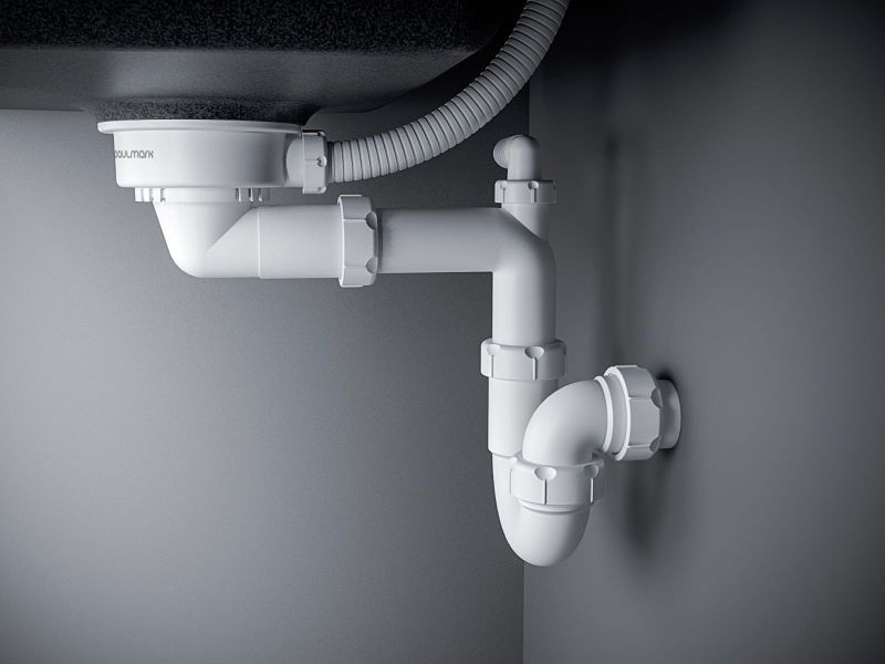 Входит в комплект. Его конструкция позволяет увести колбу к стене, что кратно увеличит свободное пространство под умывальником.