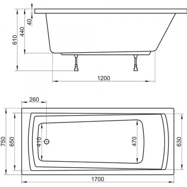 1. Ванна Domino 170x75 C6310000002. Передняя панель 170 см3. Жесткая рама - металлический каркас4. Полуавтоматический слив-перелив