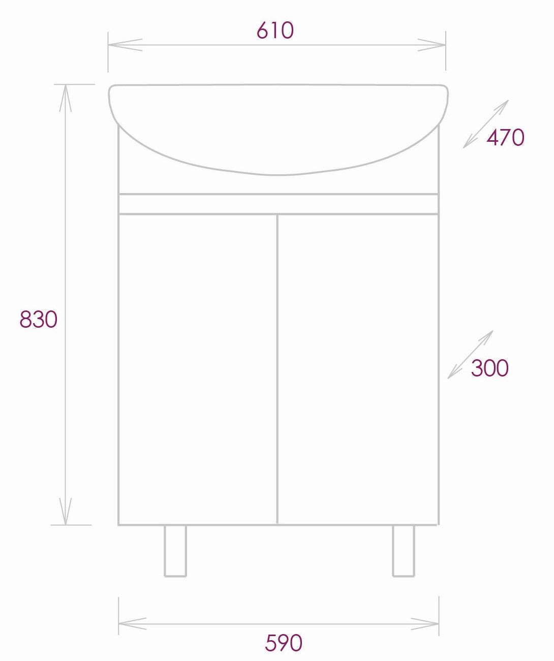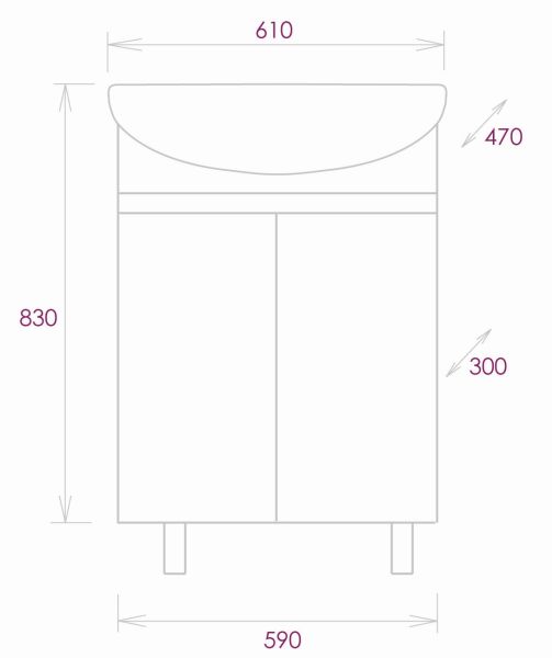 Размеры тумбы без учета раковины и ножек 59х30х68см.