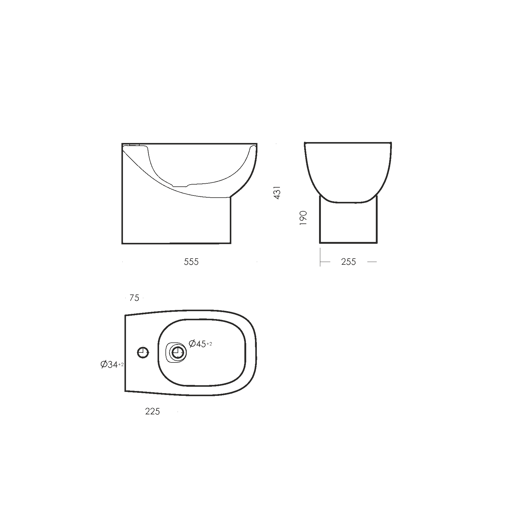 Напольное биде Infinity повторяет геометрию унитаза-компакта Infinity.