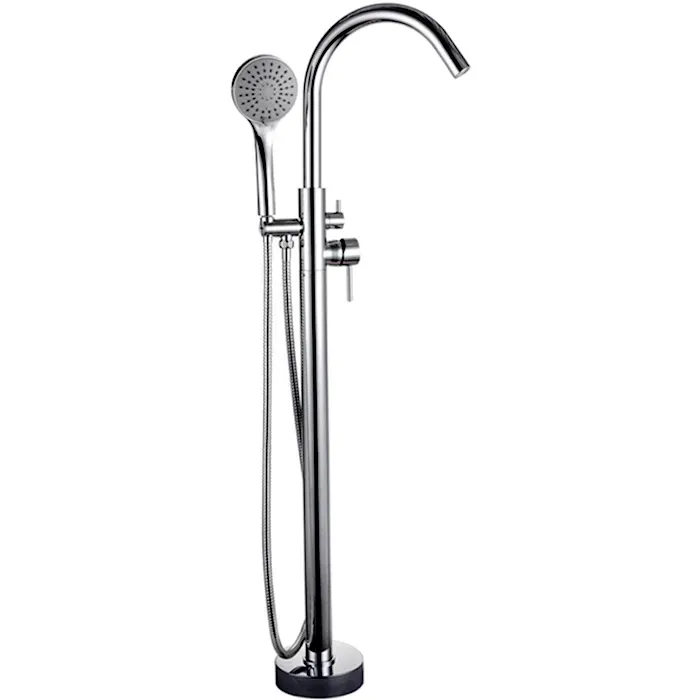 Смеситель для ванны Gappo G3098 напольный — однорычажная модель из латуни с хромированным покрытием. Смеситель оснащен картриджем Sedal 35 мм, в комплекте душевой гарнитур с однорежимной лейкой и шлангом. Цвет - хром.