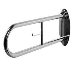 АКВ-82 поручень для унитаза откидной с держателем туалетной бумаги Ø 32 /80 х 23/(нержавеющая сталь), шт
