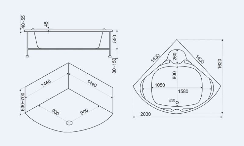 Экраны (панели) применяют не только для создания интересных интерьеров ванной комнаты. Их также используют для скрытия неприглядных инженерных коммуникаций, сливных труб и прочего сантехнического оборудования: кранов, вентилей и т. д. Красиво оформленный экран под ванну выступит отличным дополнением любого интерьера, придав ему ноток экстравагантности и необычности.Панель фронтальная BAS Хатива предназначена для установки к акриловой ванне модели Хатива размером 1430х1430 мм. Панель из акрила устанавливается спереди ванны и позволяет придать ее конструкции целостный и эстетичный вид. Отличается высокой прочностью, а также стойкостью к загрязнению и механическим повреждениям. Она создана по соответствующим размерам и имеет нейтральный дизайн, подчеркивая эстетичность изделия. Панель позволяет придать ванне завершенность и практичность. Экран устраняет проблему лишней уборки, так как защищает пространство под ванной от засорения. Кроме того, он легко скрывает коммуникации или монтажные конструкции, декорируя их.Используемый в производстве акрил практически не подвержен деформациям. Панели для ванны стойкие к воздействию влаги и сохраняют свой внешний вид даже при повышенном уровне влажности. Материал экологичен и не допускает размножения бактерий, оставаясь экологически безопасными и гипоаллергенными.