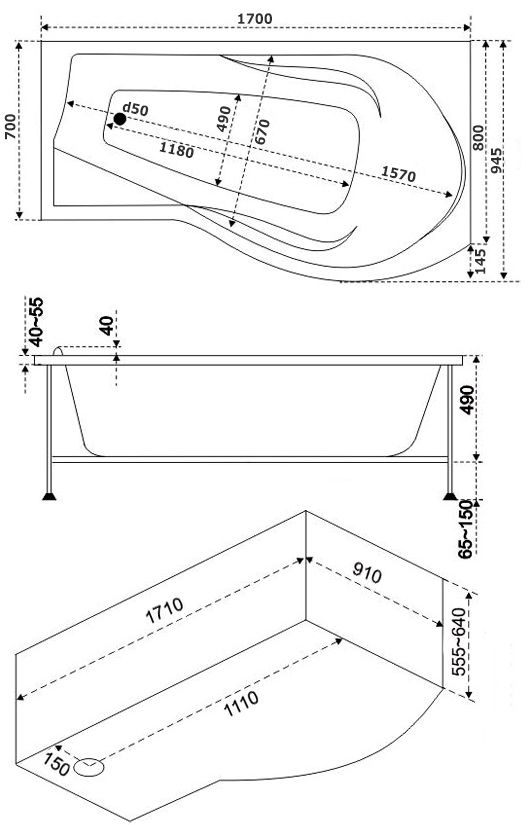 Панель фронтальная для акриловой ванны BAS Капри правая 170х56 см