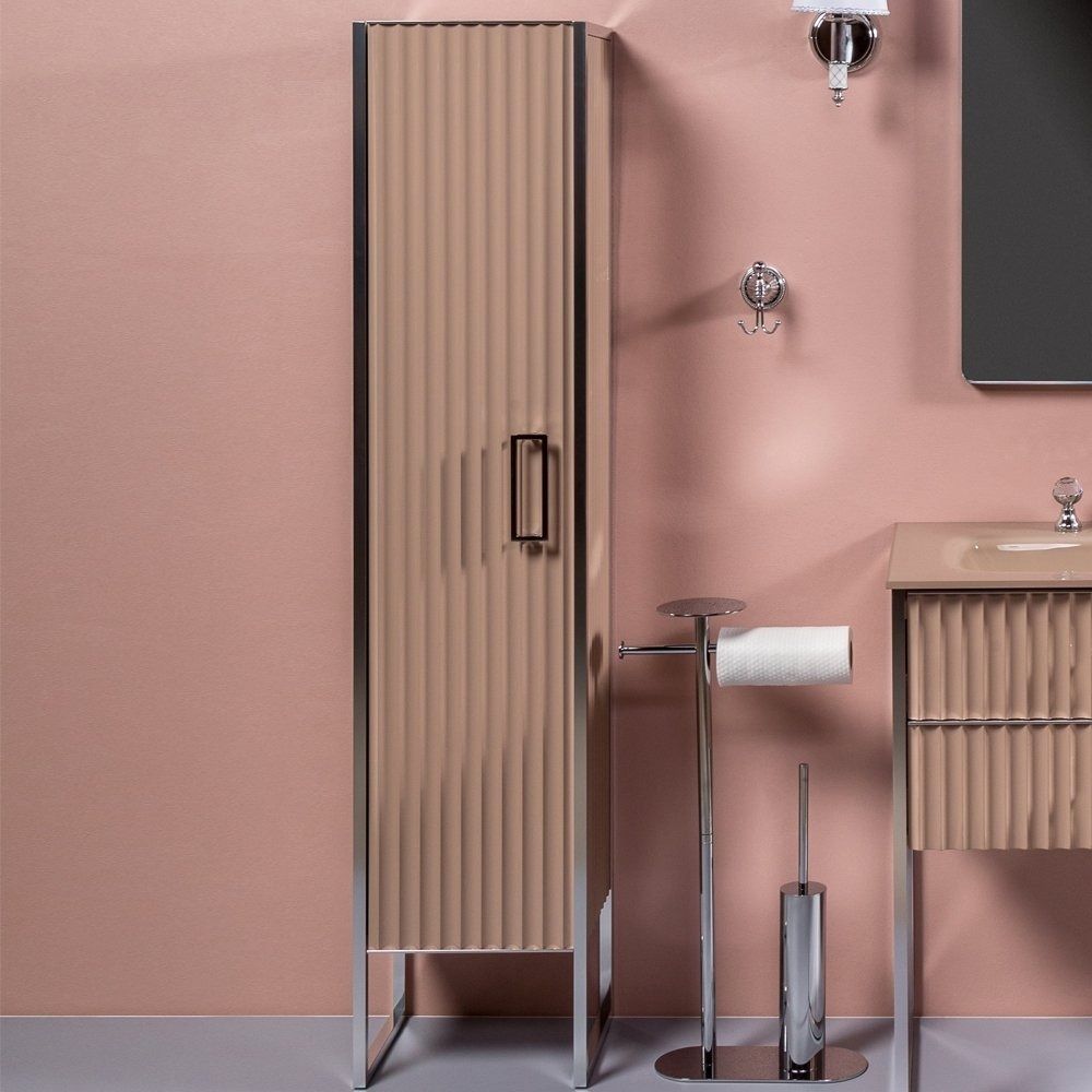 Шкаф-пенал Armadi Art Monaco L великолепно подойдет как для просторной ванной комнаты, так и для небольшого помещения. Напольный способ установки производится непосредственно на пол, при этом конструкция максимально устойчива при серьезных физических нагрузках.В производстве используют только качественные влагостойкие материалы (алюминий), в составе которых полностью отсутствуют опасные вещества. Серия Monaco отличается превосходным дизайном с соблюдением всех важных элементов стиля ретро. Основным цветом, в котором выполнен шкаф-пенал Armadi Art Monaco является бежевый, гармонирующий с большинством интерьерных решений. Шкаф-пенал предусматривает удобную и вместительную систему хранения, состоящую из дверей. Качественные доводчики позволяют обеспечить мягкое и тихое закрывание. Ключевые габариты изделия: ширина 35 см, глубина 30 см, высота 170 см.Страной бренда Armadi Art является Италия, все товары производятся с выполнением соответствующих стандартов качества, что позволяет быть полностью уверенными в долговечности и надежности. Шкаф-пенал Armadi Art Monaco L поможет сделать уютным любой интерьер и создать идеальную ванную комнату.