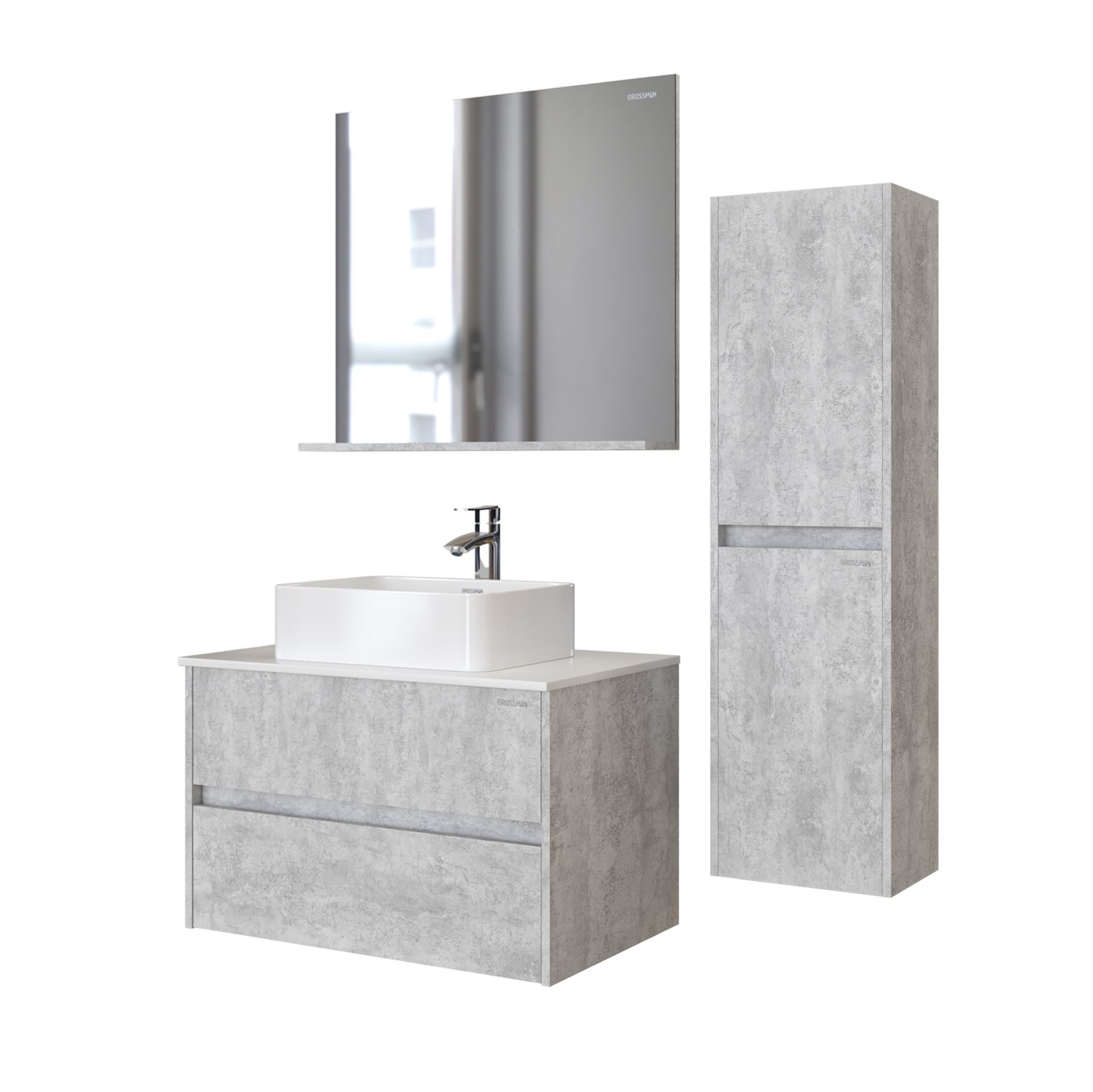 Подвесной пенал Эдванс 35 см - отражает современные тенденции в дизайне мебели для ванных комнат: и создан для тех, кто ценит современный лаконичный дизайн, холодный эффект светлого цемента.