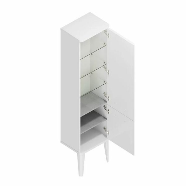 Высокий пенал, предложенный в серии POMPEI, может быть установлен в ванной либо как подвесной, либо как напольный (ножки прилагаются в комплекте). Мебель выполнена в том же стиле, что и тумбы POMPEI с обновлённым дизайном.