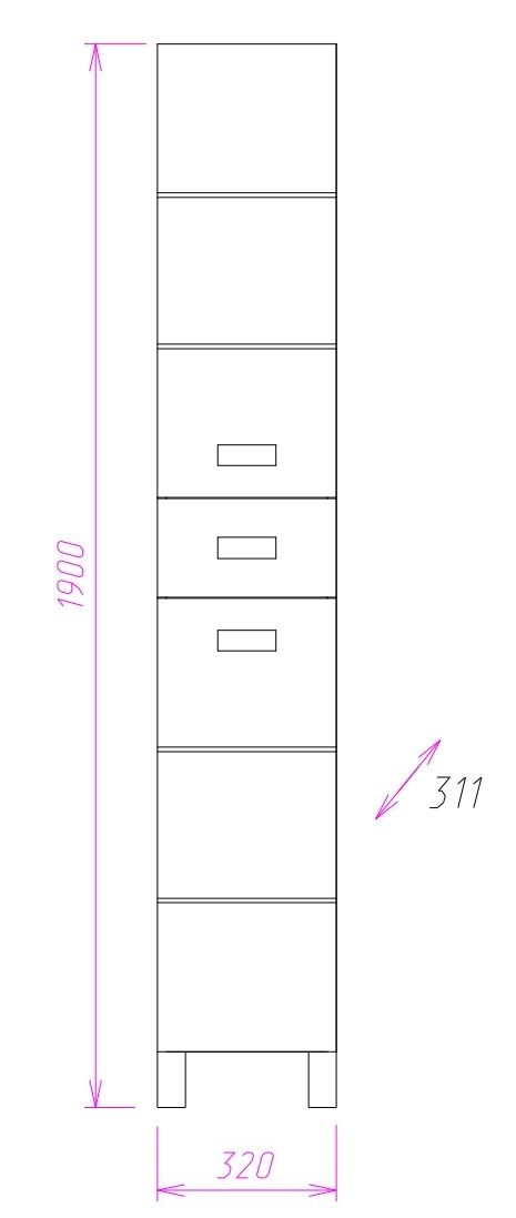 Размер пенала с ножками: 32х32х190 см.